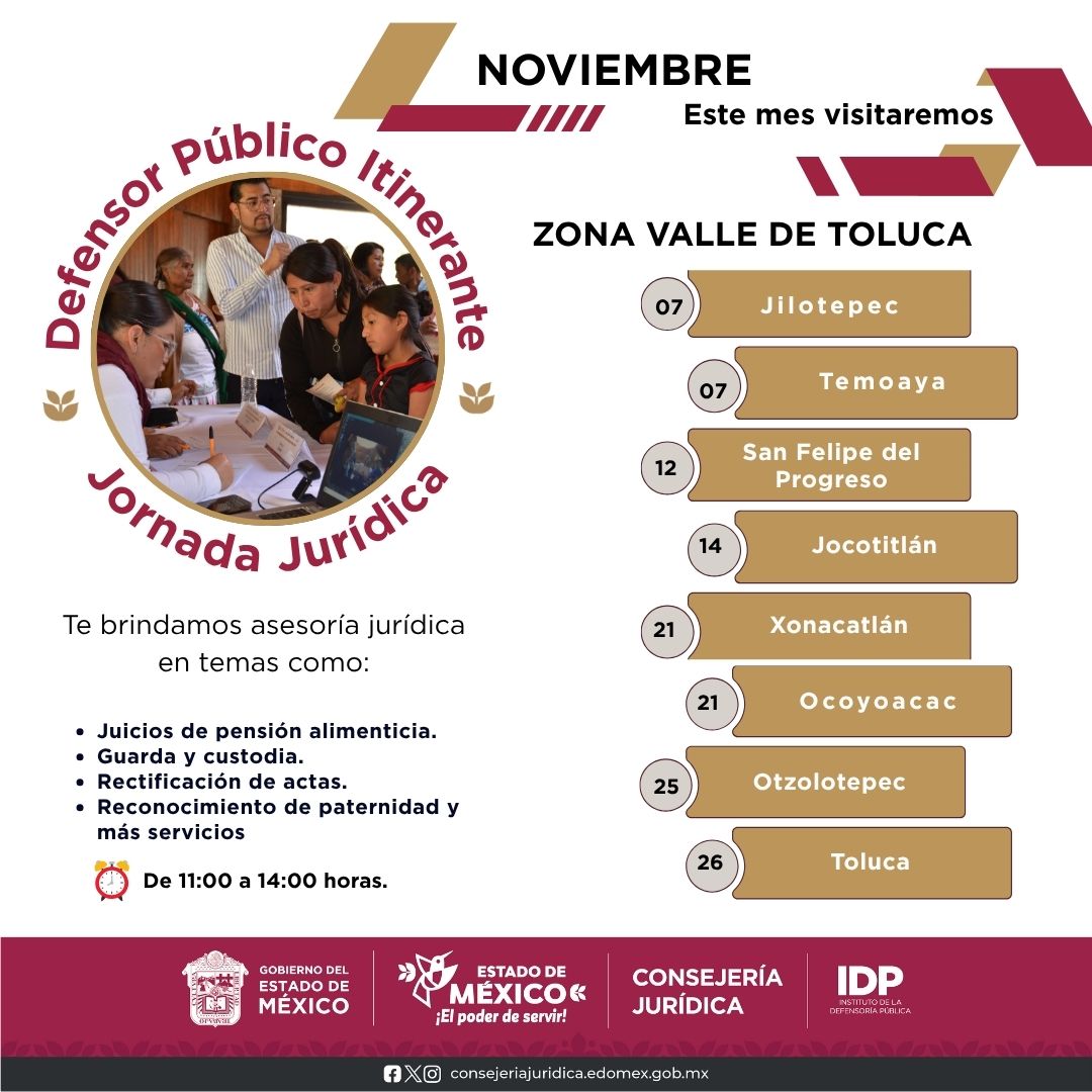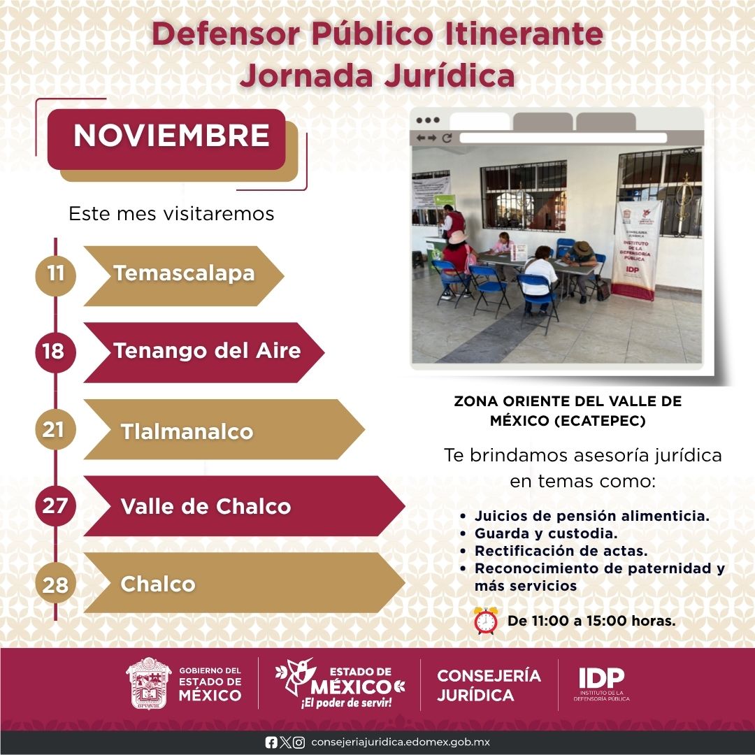Con la finalidad de acercar asesoría jurídica gratuita a la población mexiquense, se realizan jornadas itinerantes en el territorio estatal.